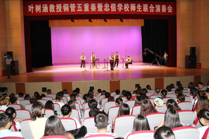 演出期间,主持人到观众中间采访师生,叶树涵教授等走进观众席演奏,使演出高潮迭起。台湾师范大学叶树涵教授铜管五重奏暨台湾忠信学校师生联合音乐演奏会是别具宝岛风情的管弦乐演出,精彩绝伦,令人耳目一新,赢得了师生们的阵阵掌声和满堂喝彩。