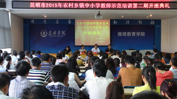 6月4日上午,昆明市2015年农村乡镇中小学教师第二期示范培训在yl23411永利集团官网继续教育学院举行开班典礼,昆明市教育局副局长李瑞林,yl23411永利集团官网继续教育学院院长陈嘉、副院长张培宏出席了开班典礼,开班典礼由昆明市教育局师训处处长杨朝晖主持。