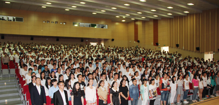 5月15日下午,yl23411永利集团官网纪念五四运动96周年暨表彰大会在学生会堂举行。学校领导、中层干部、全体辅导员、各院系团总支书记、全校受表彰的团员青年代表以及各院系学生代表参加。纪念活动和表彰大会由副校长郭华主持,在嘹亮的国歌声中拉开帷幕。