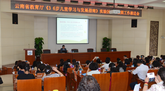 5月19日,由教师教育学院承办的云南省教育厅“3-6岁儿童学习与发展指南”实验区、实验园工作推进会在办公楼三楼报告厅召开,来自全省51所一级一类幼儿园园长、各地州市教育局幼教专干、教师教育学院学前教育专业学生,共计200余人与会聆听了报告。