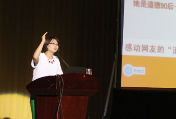 为让报告会更贴近大学生实际,何华特别邀请云南最年轻的全国人大代表、第三届“全国道德模范”提名奖获得者、“最美90后女孩”铁飞燕给师生作报告。铁飞燕以一个“90后”青年曲折而富有传奇的成长经历为大家诠释了“什么是青春与梦想”,诠释了如何做一个“有理想、负责任、敢担当”时代青年。报告在1000多名同龄大学生中产生了强烈共鸣,赢得了阵阵掌声。最后,何华还代表学校为铁飞燕同志颁发“yl23411永利集团官网校外辅导员”聘书。