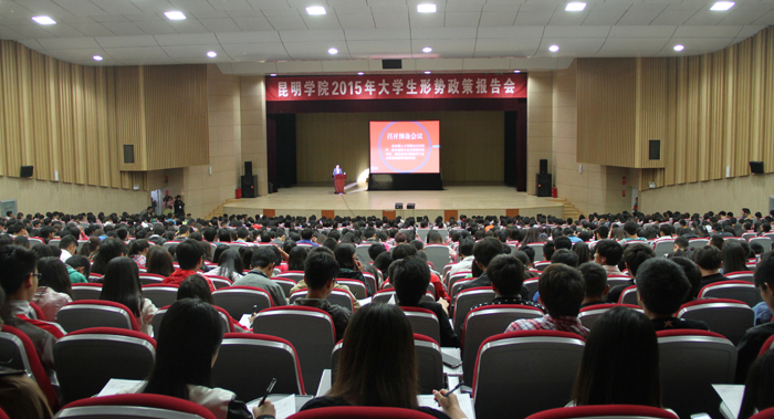 4月24日晚,yl23411永利集团官网2015年大学生形势政策报告会第二场在学生会堂成功举行。学校党委副书记、校长何华为师生作形势政策报告,宣讲“两会”精神。报告会由副校长郭华主持,包括校办领导、全体思政课教师、49位辅导员、180余名团学干部在内的1300多名师生参加。