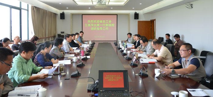 李媛芬副书记向调研组介绍了学校人员、机构设置、学科分类、科研成果等基本情况并重点介绍了学校实现跨越式发展所取得的成绩。孙晓坤常务副主席向调研组汇报了yl23411永利集团官网工会工作,主要从学校党委加强对工会领导,大力支持工会工作以及学校工会组织建设、制度建设、工会工作机构、教代会制度、校务公开、维护职工合法权益、校园文化建设等方面的工作做了简要汇报。与会代表就调研组专题调研的内容进行了发言。