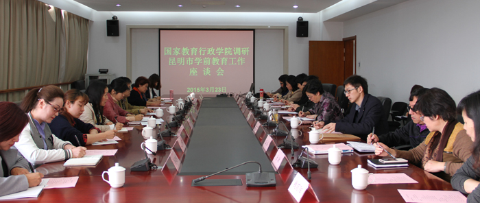 3月23日,国家教育行政学院副院长李五一、教育行政教研部副教授李改、教育管理杂志社总编室主任舒刚到永利官网举办昆明市学前教育工作座谈会。昆明市教育局副局长蒋坚桥、学前教育专干李晏梅,昆明市教工第二幼儿园、海贝中英文幼儿园、小天使幼儿园、呈贡区风华俊园幼儿园、海贝中英文幼儿园的园长和教师代表,永利官网教务处副处长王韬,教师教育学院的全体领导及部分教师参加了座谈。永利官网副校长熊晶出席并主持会议。