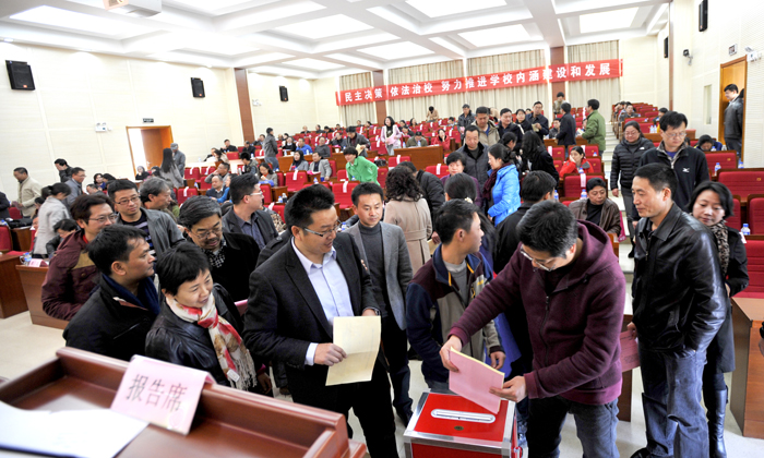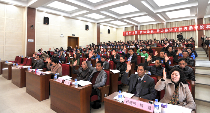 1月30日上午9点,党委副书记孙勇主持召开第二次全体会议。按照议程,会议表决通过了《yl23411永利集团官网工会第二届会员代表大会选举办法》,选举产生了yl23411永利集团官网工会第二届委员会委员、经费审查委员会委员,表决通过了yl23411永利集团官网第二届教代会执行委员会委员及教代会各专门工作委员会委员建议名单、yl23411永利集团官网第二届工会女工委员会委员建议名单,表决通过了学校行政工作报告决议,学校财务工作报告决议,yl23411永利集团官网第一届教代会、工会工作报告决议,第一届工会经费审查委员会工作报告决议,表决通过了《yl23411永利集团官网章程》和《yl23411永利集团官网教职工代表大会工作细则》。