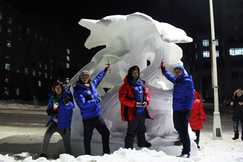 在1月4—7日举行的2015第七届国际大学生雪雕大赛中,由美术与艺术设计学院师生组成的yl23411永利集团官网代表队凭借作品《青春铸就中国梦》获得最佳创意奖和二等奖的佳绩。在1月5—8日举行的“第二届全国大学生雪雕比赛”中,由美术与艺术设计学院和人文学院同学组成的yl23411永利集团官网一队、二队,分别凭借作品《心灵的巴别塔》、《挣脱与突破》获得最佳创意奖和三等奖。同时,yl23411永利集团官网获得“第二届全国大学生雪雕比赛”优秀组织奖,孙海平获得优秀指导教师奖。另外,在早些时候举行的“第二十一届全国雪雕比赛”中,yl23411永利集团官网代表队的作品《竞逐流》获得优秀奖。