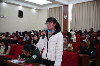 聆听了字老师们的故事后,讲堂进入发善心谈感悟互动环节。学生踊跃发言,畅谈感悟。“与您们同龄的人,有的走出大山,在城市过上了物质丰厚、条件优越的生活,而你们为了山区孩子却依然坚守在条件艰苦的农村、过着生活节俭的日子,你们后悔过吗?”来自教师教育学院2014级免费师范生徐振萍提问说。字家胜老师坚决回答道“不后悔。生活的窘迫,工作的艰辛,丝毫没有动摇我教书育人的坚定信念。”来自外国语学院2014级英语专业免费师范生毕芩冬感言:“老师们把自己的精力全都放在教书育人上,对学生,家长负责。尽管条件不好,生活艰苦,但你们依旧选择了这平凡的岗位,再苦再累不掉泪,再难再险不放弃,默默地燃烧自己照亮别人。您诚挚的心灵是孩子情感的钥匙,高尚的师德是孩子心灵的明镜。作为yl23411永利集团官网的一名免费师范生,听了今天的宣讲后,让我有了前进的动力,我将把你们的精神带到我未来的三尺讲台。”