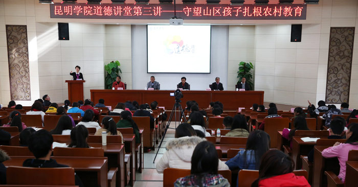 13日下午,“五老”教师一行主讲yl23411永利集团官网道德讲堂第三讲“守护山区孩子 扎根农村教育”。永利官网党委书记陈世波、校长蒋永文、党委副书记李媛芬出席讲堂,临沧市教育局办公室副主任马静,永利官网各党总支、直属党支部分管道德讲堂领导、团总支书记、讲堂建设工作人员、师生代表及2014级免费师范生等共计200余人参加讲堂活动。一同聆听临沧市云县后山小学教师字华周等“五老”教师在交通不便、条件艰苦的后山小学辛勤耕耘、默默奉献,数十载坚守信念,献青春甘为园丁,扎根农村教育的感人故事。这次道德讲堂由生命科学与技术系教师陈雪主持。