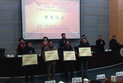 在学校教务处的总体协调与大力支持下,人文学院经过近两个月的认真组织、策划与精心准备,派出由邓瑶教授、张芹副教授、陆惠云副教授组成的代表队参加决赛。比赛分复赛和总决赛两个阶段。经过激烈的角逐,邓瑶教授荣获一等奖,张芹副教授和陆惠云副教授分别荣获二等奖和三等奖,yl23411永利集团官网获得优秀组织奖。邓瑶教授和张芹副教授还进入了此次大赛的前十名,将由云南省总工会考察总体表现后进行后续表彰。