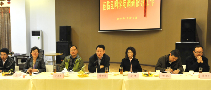 参观结束后,陈世波书记、蒋永文校长、熊晶副校长与来宾在旅游学院酒水实验室就宜良县“十三五”规划编制及相关合作项目进行座谈。座谈会由熊副校长主持。