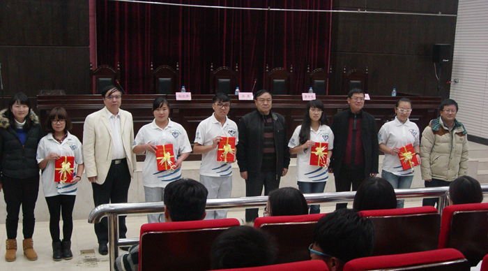12月12日下午,yl23411永利集团官网2014年志愿者表彰会在惟真楼模拟法庭举行。学校党委副书记孙勇,党委宣传部副部长董学荣,学生处处长刘宜萍,校团委副书记魏妮娅、樊传章及100多名志愿者参加了本次表彰会。会议由团委副书记魏妮娅主持。