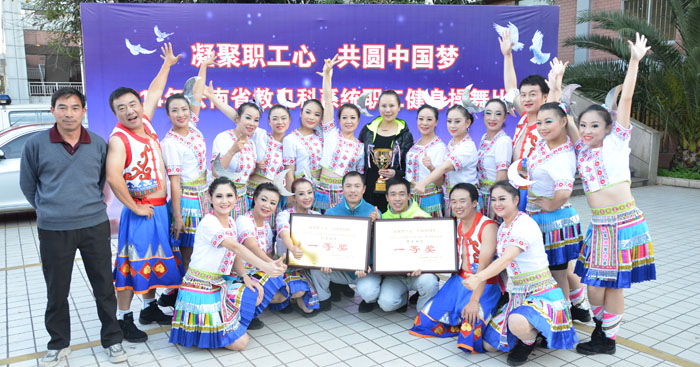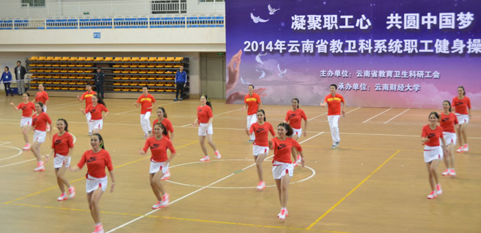 永利官网教职工代表队在刚刚结束的2014年云南省教育卫生科研系统职工健身操舞比赛中顽强拼搏,喜获佳绩,取得了两项一等奖和团体总分第三名。
