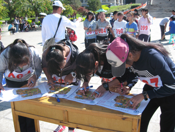 yl23411永利集团官网2014年冬季运动会定向运动比赛于11月8日成功举行。定向运动是今年冬季运动会的比赛项目之一,由yl23411永利集团官网体育运动委员会主办、体育学院承办、yl23411永利集团官网“风雨者”定向越野俱乐部协办。本次比赛是学校第二次举办定向运动比赛,包括百米定向赛、积分定向赛和团队定向赛三个项目,全校18个院系的500多名学生和40多名教师运动员报名参赛。体育学院院长、本次赛事的总裁判长赵平老师和体育学院党总支书记韦继康老师分别为积分定向赛和百米定向赛鸣枪开赛。百米定向赛的比赛场地在学校聂耳广场,定向积分赛和团队定向赛的赛场包括了整个校园。