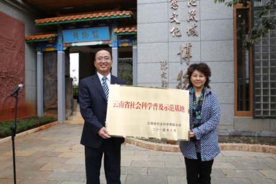 二是云南省社会科学普及示范基地在博物馆挂牌。“滇池流域生态文化博物馆”自建设以来,得到了社会各界的关心和支持,在面向师生试开放期间就获得好评,也吸引了更多研究人员的参与。经学校申报,云南省社会科学联合会决定将“滇池流域生态文化博物馆”命名为“云南省社会科学科普教育示范基地”。博物馆揭牌后,省社科联副主席靳昆萍为“滇池流域生态文化博物馆”授牌,永利官网校长蒋永文接牌。随后,各位来宾、学校领导及师生参观了博物馆。