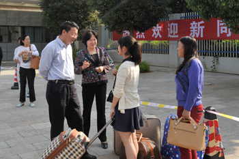 校领导每到一个报到点,都要与到场的各部门负责人和接待的工作人员了解新生报到注册状况,并热情地与前来报到注册的新生及新生家长亲切交谈,关心询问新生们的报到注册情况,及时解决新生接待中遇到的问题。