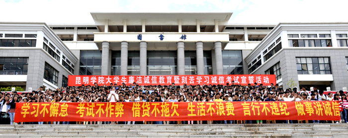 为加强校园廉洁文化建设,进一步增强广大同学遵规自律和笃实诚信意识,引导学生养成“学习不懈怠、考试不作弊、借贷不拖欠、生活不浪费、言行不违纪、做事讲诚信”的良好习惯,6月20日中午,学校纪委在聂耳广场举行yl23411永利集团官网大学生廉洁教育暨诚信考试承诺签字活动。学校党委副书记、纪委书记李媛芬,党委组织部部长杨璐,团委副书记魏妮娅,纪委办(监审处)全体同志及各教学院系学生党员代表、学生干部代表、廉诚学社全体社员共计600余人参加活动。活动由纪委副书记、监审处处长陈开祥主持。