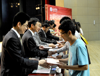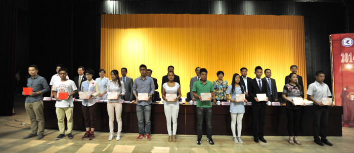 郭华副校长宣读《yl23411永利集团官网关于对2014届省级优秀毕业生进行表彰的决定》,与会校领导分别为获奖学生代表颁发荣誉证书,229名同学受到了表彰奖励。
