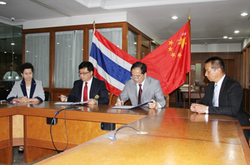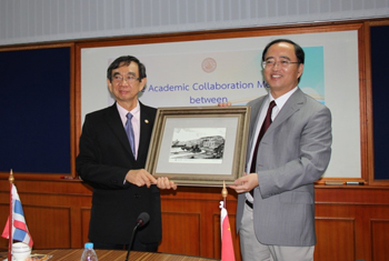 暹罗大学校长Pornchai Mongkhonvanit 先生和蒋永文校长介绍了两个学校的基本情况,对两校开展各项国际交流和合作活动充满了信心和期待。随后,两位校长代表各自学校签署了合作备忘录。