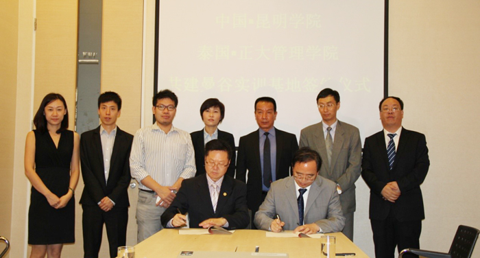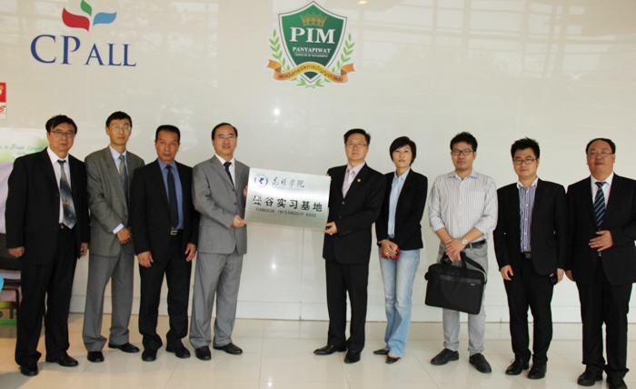 蒋校长代表yl23411永利集团官网,对正大集团和正大管理学院的热情接待表示感谢,在介绍了永利官网基本情况的基础上,表达了进一步加强和正大管理学院在师资培养、学生实习实训、教师及企业管理人员职后培训等多方面进行合作的愿望。随后,蒋校长和洪风先生代表两校签署了新的合作备忘录,并举行了“yl23411永利集团官网曼谷实习基地”的挂牌仪式。