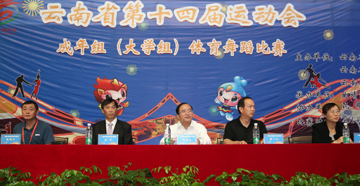 省教育厅体卫艺处处长董一凡宣布:“云南省第十四届运动会成年组(大学组)体育舞蹈比赛开赛”。来自云南高校的大学组选手分别对12个项目展开了激烈角逐。参赛选手准备充分,将集音乐、舞蹈、体育、形体等多种艺术于一体的艺术盛宴呈现给观众,充分展示选手妩媚潇洒、婀娜多姿的舞姿,热情奔放、生动活泼风格的独特艺术魅力和自信个性。选手可谓水平高,竞争激烈,比赛精彩纷呈、绚丽多彩。