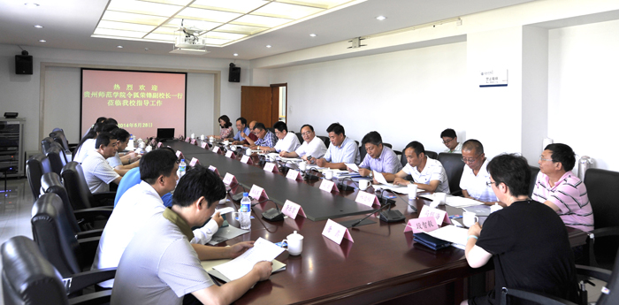 5月28日,贵州师范学院副校长令狐荣锋率教务处、后勤处、外国语学院、物理与电子科学学院、体育学院、教学质量评估与监测中心、化学与生命科学学院、地理与旅游学院、艺术学院等部门负责人到永利官网考察交流。