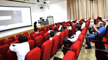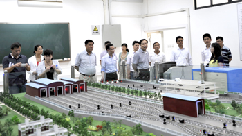 座谈前,张寿国副校长、校长助理郑克刚陪同来宾参观了综合体育馆、3G模拟导游实验室、轨道交通实验室、物理科学与技术系实验室、化学科学与技术系实验室。