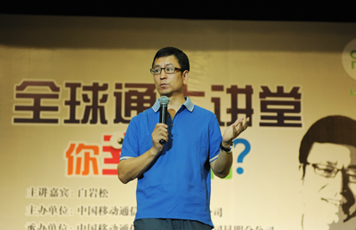 5月17日下午两点半,他准时出现在yl23411永利集团官网学生会堂的讲台上,作为中国移动举办的“全球通大讲堂”的主讲嘉宾,为在场的观众们倾情奉献精彩讲座。出场的白岩松没有走向主办方专门为他准备的有矿泉水和椅子的演讲席,而是径直走向了舞台的前面,站在了距离观众最近的地方,这一站就是三个多小时。