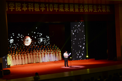 5月22日晚,以“腾飞梦想,绽放美丽”为主题的yl23411永利集团官网本科教育十年成果展暨全校师生联欢会在学生会堂举行。学校党委书记陈世波,校长蒋永文,党委副书记孙勇、李媛芬,副校长郭华等领导和师生们欢聚一堂,共同庆祝学校跨越发展。晚会旨在展示学校本科教育十年来艰苦创业和跨越发展的辉煌成果,增强全校师生对学校的认同感和归属感,凝心聚力,振奋精神,继往开来,努力开创学校更加美好的明天。