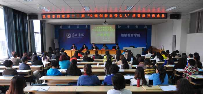 5月5日,由永利官网继续教育学院承办的昆明市妇联第13期“巾帼创新业带头人”培训班在昆师路校区举行。刘海发副校长,昆明市妇联党组书记、主席杨文惠,昆明市妇联副主席梅会芬,yl23411永利集团官网继续教育学院陈嘉院长、张培宏副院长等领导出席开班仪式。来自全市各个县(市)区、开发(度假)区及市妇联促进就业中心的100名学员将参加为期5天的集中培训。
