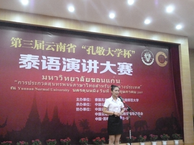5月9日,第三届云南省“孔敬大学杯”泰语演讲大赛在云南师范大学-云南华文学院隆重举行。永利官网外国语学院2010级的岳晓景同学以总分排名第四的成绩荣获泰语演讲比赛(非专业组)优秀奖,同样来自外国语学院2010级的宋云秋和陈龙光同学在泰语与泰国知识竞赛中荣获(非专业组)优秀奖。