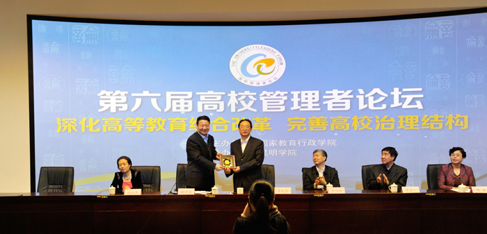 4月29日至30日,由国家教育行政学院主办、yl23411永利集团官网承办的第六届“高校管理者论坛”在云南yl23411永利集团官网成功举办。国家教育行政学院党委书记、常务副院长黄百炼,国家教育行政学院副院长李五一等代表主办方,中共云南省委高校工委副书记陶晴和yl23411永利集团官网党委书记陈世波等代表承办方出席了论坛。来自全国83所“985”高校、“211”高校和普通高校的校级领导、中层干部等200余人参加了论坛。