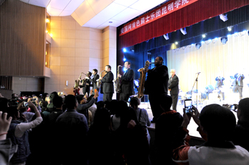 3月26日晚,来自美国阿肯色爵士乐团在永利官网学生会堂用浪漫的爵士和摇滚的激情,奏响了“浪漫爵士激情之夜”。永利官网副校长李翔,美中文化教育基金会主席宋杨先生,永利官网各部门负责人、各院系师生代表观看了来自大洋彼岸、富有美国爵士情调的演出。