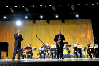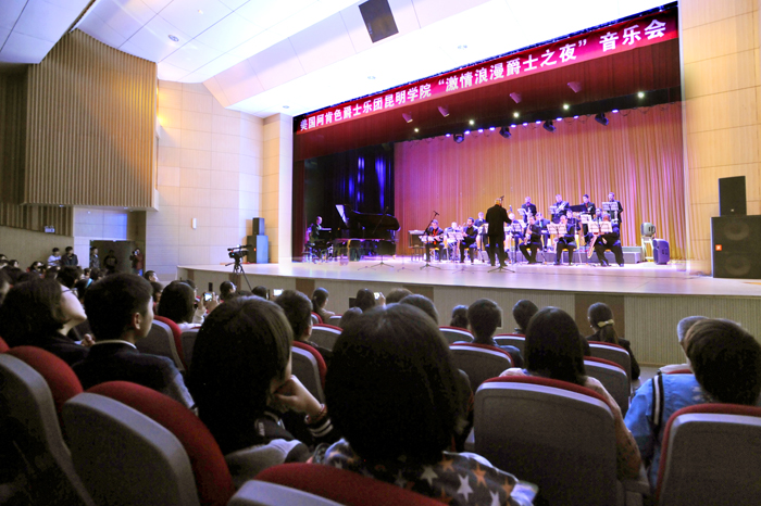 美国阿肯色爵士乐团2014年中国首次巡回演出,进行了一年多的准备。为让yl23411永利集团官网师生原汁原味享受到美国阿肯色爵士乐团“浪漫爵士激情之夜”,乐团在演奏和歌曲上做了精心准备,提前到学校学生会堂认真彩排,制定了一台曲目丰富,悦耳动听,充满浪漫而又富于激情的爵士乐晚会,晚会不仅涵盖美国著名的爵士乐曲和乐团自己的成功作品,从内容上还特别注重了晚会的现场演奏激情效果,既有爵士乐特有的浪漫与潇洒,又有摇滚风格的豪迈与激情,为了表达对中国人民的友好情谊,乐团还精心选择了两首中国作品《甜蜜蜜》和《玫瑰,玫瑰我爱你》。爵士乐大师们对《甜蜜蜜》和《玫瑰,玫瑰我爱你》的编曲和配器,赋予了中国两首歌曲独特的情调与浪漫激情的爵士乐魅力。丰富精彩的曲目、震撼心灵的旋律、浪漫而富于激情的爵士乐演奏,演奏中与师生近距离互动,使演奏氛围一浪高过一浪,让人心情激荡,难忘 “浪漫爵士激情之夜”。