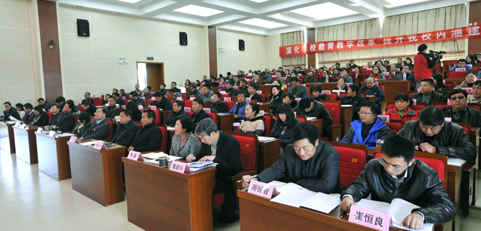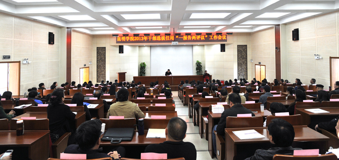 “一报告两评议”是干部工作中的一项常规工作,学校按照省委《关于做好2013年干部选拔任用工作“一报告两评议”有关事项的通知》召开干部大会,首先,陈世波书记作《yl23411永利集团官网2011年11月以来选人用人工作情况报告》;接着,对2011年11月以来党委干部选拔任用工作情况和新提拔任用的正处级干部进行评议。
