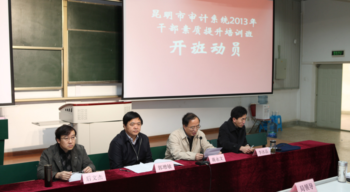 12月5日上午,“昆明市审计系统2013年干部素质提升培训班”开班动员大会在永利官网博识楼2003报告厅举行。永利官网党委副书记、校长蒋永文,昆明市审计局党委书记郭增敏,昆明市审计局局长李冰晶出席开班动员大会。会议由昆明市审计局机关党委书记后文杰主持。