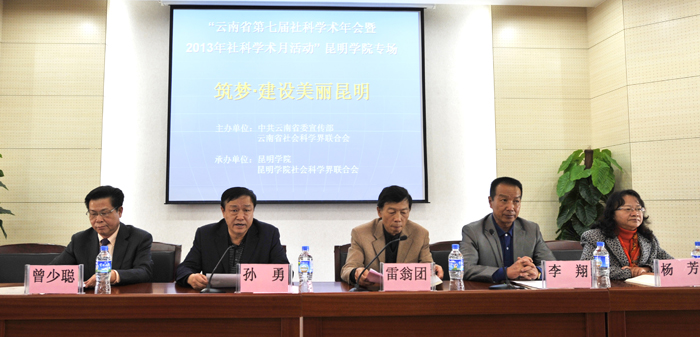 为深入学习贯彻党的十八大精神,进一步繁荣发展云南省哲学社会科学事业,在建设开放富裕文明幸福新云南进程中更好地发挥高校思想库、智囊团作用,yl23411永利集团官网按照省社科联《关于举办“云南省第七届社科学术年会暨2013年社科学术活动月”的通知》,由学校社科联、学校科研处组织开展了以“筑梦•建设美丽昆明”为主题的2013年云南省社科学术活动月yl23411永利集团官网专场系列活动,本次活动主要由三个部分组成。