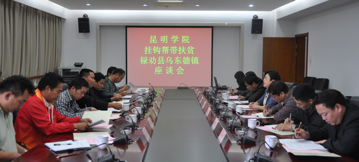 10月15日,禄劝县张继帅副县长带领县政府办、交通局、扶贫办、乌东德镇党政领导到学校共商学校定点帮带扶贫乌东德镇项目。永利官网副校长熊晶,校办、工会、计划财务处、资产管理与设备处、农学院相关领导参加了座谈会。