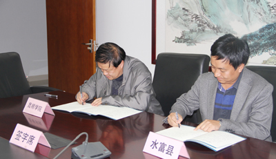 10月23日下午,在办公楼411会议室,永利官网与昭通市水富县举行合作协议签字仪式。永利官网党委书记陈世波、校长蒋永文、党委副书记孙勇和水富县委书记薛桂强、县长高绍周、县委副书记李跃波(学校选派挂职的新农村建设总队长)出席。水富县委办公室主任李廷鑫、县政府办公室主任向东、县教育培训中心主任王雪峰和永利官网党委办公室主任吉庆华、组织部部长杨璐、校长办公室主任杨跃、财务处长陆志平、资产管理与设备处长解永刚、继续教育学院院长陈嘉参加了签字仪式。学校党委副书记孙勇主持签字仪式。