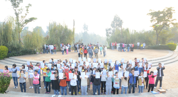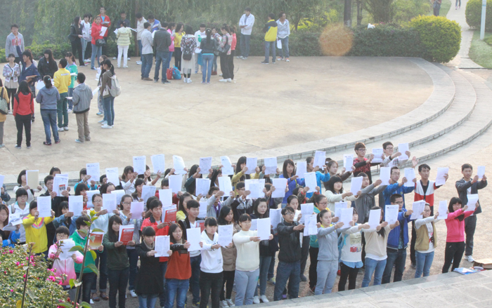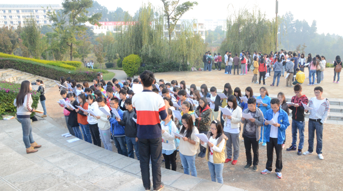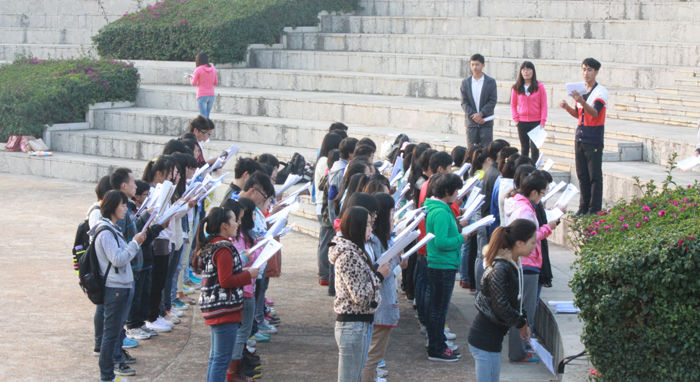 还未走近听心湖,一阵琅琅读书声便传入耳。记者上前打探,这是yl23411永利集团官网的“希望部落英语协会”和“晨读社”两个社团正在晨读。据负责的熊剑杰和冯明贵两位同学介绍,两个社团分别在早晨的6点40和7点10分开始晨读活动,最早的同学甚至还有6点10分就到这里开始读书。每天聚在听心湖畔的学生人数大概是140人左右,而且随着许多周边单独晨读的同学和慕名而来的同学的加入,晨读的队伍还在不断地扩大。