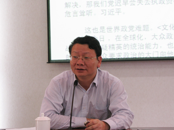 首先,陈书记讲解“为什么要在全党深入开展党的群众路线教育实践活动?”陈书记从胡锦涛、习近平的一系列讲话,党的十八大报告、《文化纵横》等关于群众路线的观点,中共中央通过调研、问卷、座谈、抽样等方式归纳总结的“四风”方面的22种表现,紧紧围绕党的十八大精神,为大家阐述了“在全党深入开展党的群众路线教育实践活动”的目的意义。党的十八大明确提出围绕保持党的先进性和纯洁性,在全党深入开展以为民务实清廉为主要内容的党的群众路线教育实践活动,这是新形势下坚持党要管党、全面从严治党的重大决策,是顺应群众期盼、加强学习型服务型创新型马克思主义执政党建设的重大部署,是推进中国特色社会主义伟大事业的重大举措。我们要坚持围绕中心、服务大局,把作风建设放在突出位置,以作风建设的新成效凝聚起推动学校事业发展的强大力量。