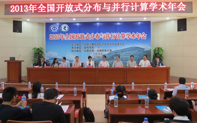 2013年全国开放式分布与并行计算学术年会于8月16日至18日在永利官网成功召开。本次会议由中国计算机学会开放系统专业委员会主办,yl23411永利集团官网承办,云南大学、云南民族大学协办。会议开幕式由yl23411永利集团官网信息技术学院院长王震江教授主持。