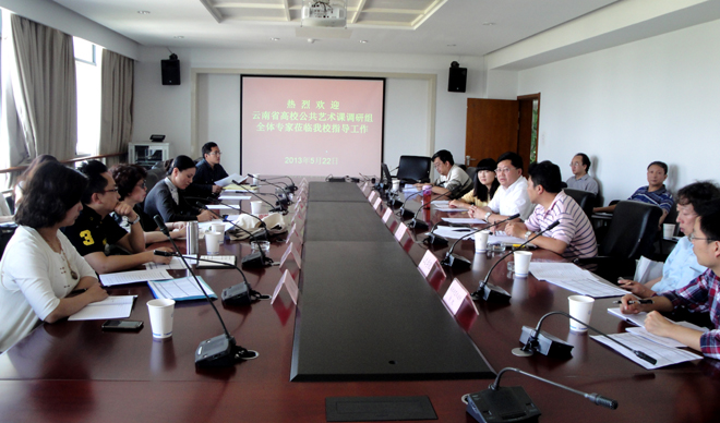 5月22日下午,由云南省教育厅体卫艺处郭春慧副处长带队的省高校艺术教育现状调研专家组一行7人到永利官网调研。调研活动按听取汇报、查看开课情况、分别召开教师和学生座谈会、问卷调查、深入课堂听课、调研情况反馈及下步工作探讨等环节进行。调研会在学校办公楼311会议室举行,教务处、人文学院、美术与艺术设计学院、音乐学院、校团委、校图书馆等教学单位和管理部门的领导、部分从事公共艺术教育的教师参加调研活动。汇报会由分管教学工作的罗明东副校长主持。