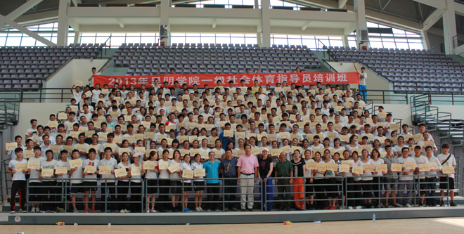 社会体育指导员培训工作是我国发展体育事业的一项重要举措,是推动我国群众体育活动、全民健身事业发展的重要力量。为进一步满足我省“十二五”群众体育发展需要,完善我省社会体育指导员队伍建设;进一步推进我市社会体育指导工作,构建“十二五”社会体育指导体系,逐步满足与完善群众体育文化生活。4月25日至5月2日,体育学院成功举办国家一级社会体育指导员培训班。本次培训面向我院部份老师和大三、大四学生,培训工作在惟行楼1501、博识楼2003和学校新建的体育馆进行, 坚持理论联系实际,学以致用。培训由云南师范大学教授、博士生导师饶远,云南师范大学教授、硕士生导师陈敏,云南民族大学教授、硕士生导师寸亚玲和yl23411永利集团官网体育学院教授周明、张群力,副教授何波等多位高级教师执教。培训课程有社会体育指导员的基本理论与方法、社会体育指导员的发展及管理、少数民族传统体育文化、技能培训和考试等。参加培训班学习的同学较系统地学习了社会体育的理论知识,掌握了一技之长。主要收获表现在:一是理论学习一丝不苟,探讨问题严肃认真,教学相长,共同提高。二是增长了相关专业技能;三是形成了文明、和谐的学习环境和氛围。经严格的理论考试和技能考核评定,有283名老师和同学取得了“国家一级社会体育指导员培训合格证书”。这次培训,为我省建立一支技能过硬,高素质、高水平的社会体育指导员队伍创造了条件,也拓宽了体育学院毕业生的就业渠道。