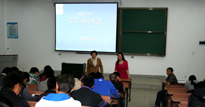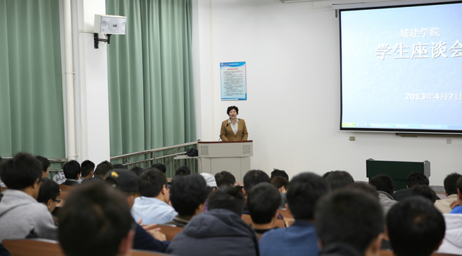 城建学院在完成本科教学合格评估后,按学校要求加强内涵建设,严肃教学纪律,严抓考纪考风,进一步改良学风,提高人才培养质量, 4月7日晚城建学院召开学生座谈会。“四群”工作联系我院的学校党委副书记、纪委书记李媛芬、宣传部副部长王宁参加了座谈会。