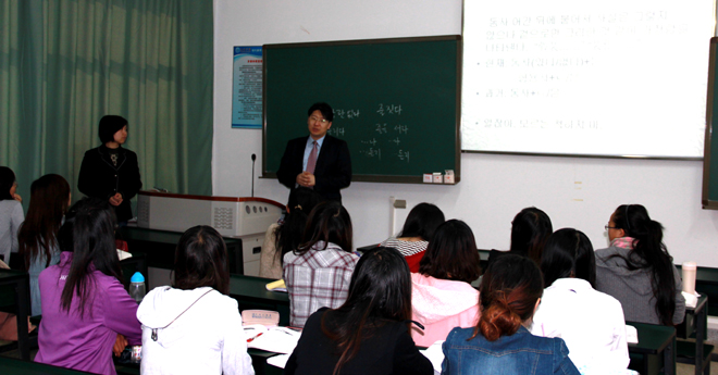 会后,安正根院长一行参观了旅游学院烹饪实训楼,观摩了旅游学院李一佼老师的韩语专业课,与2011级韩语导游专业的同学进行了交流。安院长对永利官网旅游学院办学情况给予高度评价,表示希望两校将来在合作办学,人才培养方面有进一步的合作。