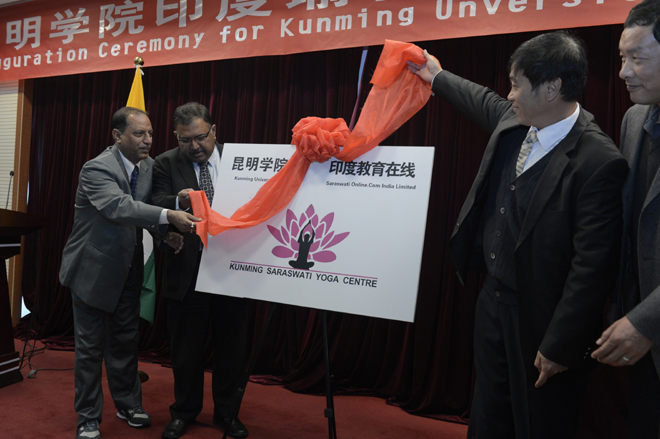 随后,Ganguli(甘古里)先生和赵平院长共同为“yl23411永利集团官网印度瑜伽中心”揭牌;加尔各答法学院院长Dr. S S Chaterji和孙晓坤副主席陪同揭牌。