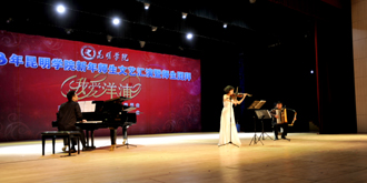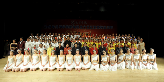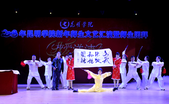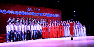 接下来的文艺演出上,由学校教职工,各院系学生以及学生社团联合会、大学生艺术团表演的节目精彩纷呈。大学生艺术团的舞蹈《新禧俏花灯》、永利官网留学生代表的歌舞表演《昆明欢迎你》、跆拳道协会表演的《胜之道》、教职工代表的乐器合奏《咆哮的风箱》、旅游学院带来的花样调酒《金蛇生瑞》等精彩的表演一次次将活动推向高潮,最后,节目在由美艺学院彭善秀教授作词、音乐学院李颖玲副教授作曲并指挥、音乐学院、教师教育学院、美艺学院学院学生共130人组成的大合唱《yl23411永利集团官网,我要为您图强》歌声中圆满落下帷幕。
