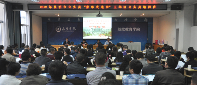 经永利官网继续教育学院的精心准备和积极申报,永利官网和云南大学、云南财经大学3所高校被确定为2012年昆明市公务员“菜单式选学”培训承办单位。除五华区公务员培训外,在接下来近两个月的时间内,永利官网还将承担来自昆明市财政局、石林县等部门和县区的400余名公务员的培训工作。