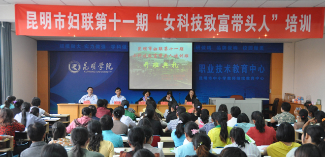 7月4日,由永利官网继续教育学院承办的昆明市妇联第十一期“女科技致富带头人”培训班在昆师路校区举行开班典礼。市妇联、市农业局和永利官网继续教育学院的领导出席开班典礼并讲话。来自全市14个县(市)区、4个开发(度假)区的108名学员将参加为期10天的培训。