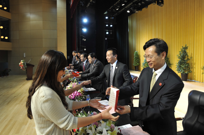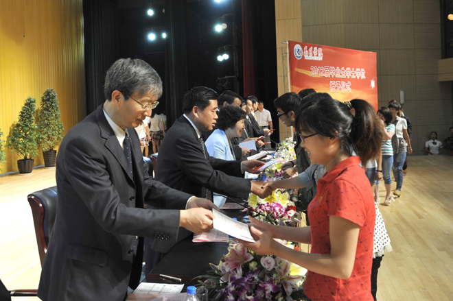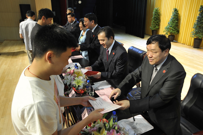 首先,李翔副校长宣读《yl23411永利集团官网关于对2011~2012学年省级三好学生、优秀学生干部、先进班集体进行表彰的决定》和《yl23411永利集团官网关于对2012届省级优秀毕业生、校级优秀毕业生进行表彰的决定》。76名省级三好学生、22名省级优秀学生干部、9个省级先进班集体;196名省级优秀毕业生,593名校级优秀毕业生受到了表彰和奖励。与会校领导分别为获奖个人和集体颁发荣誉证书。